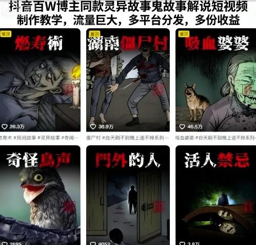抖音百W博主同款灵异故事鬼故事解说短视频制作教学,流量巨大,多平台分发,多份收益