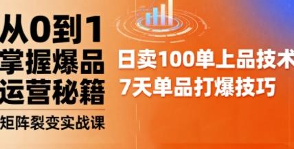 帮助你你从0到1掌握爆品运营秘籍。上部两周半聚焦爆品矩阵开店,通过3天魔鬼集训+实操,快速学会日卖100单上品技术,掌握定价心理学、蓝海产品挖掘及月销1万到100万滚雪球模型;下部两周半专攻短视频带货,拆解7天单品打爆技巧,涵盖看后搜推广、达人运营与短视频矩阵裂变,让你快速建立标准化爆品运营体系。