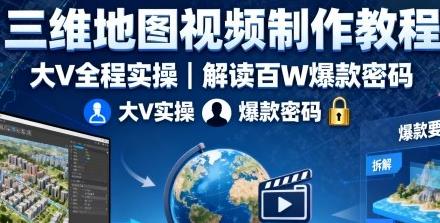 三维地图视频制作教程,大V全程实操,解读百W爆款密码