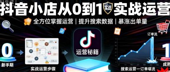 抖音小店从0到1实战运营,帮你全方位掌握小店运营,提升搜索数据与出单量