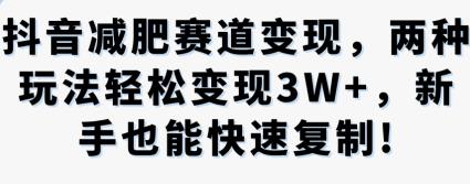 抖音减肥赛道变现,两种玩法轻松变现3W+,新手也能快速复制。【揭秘】
